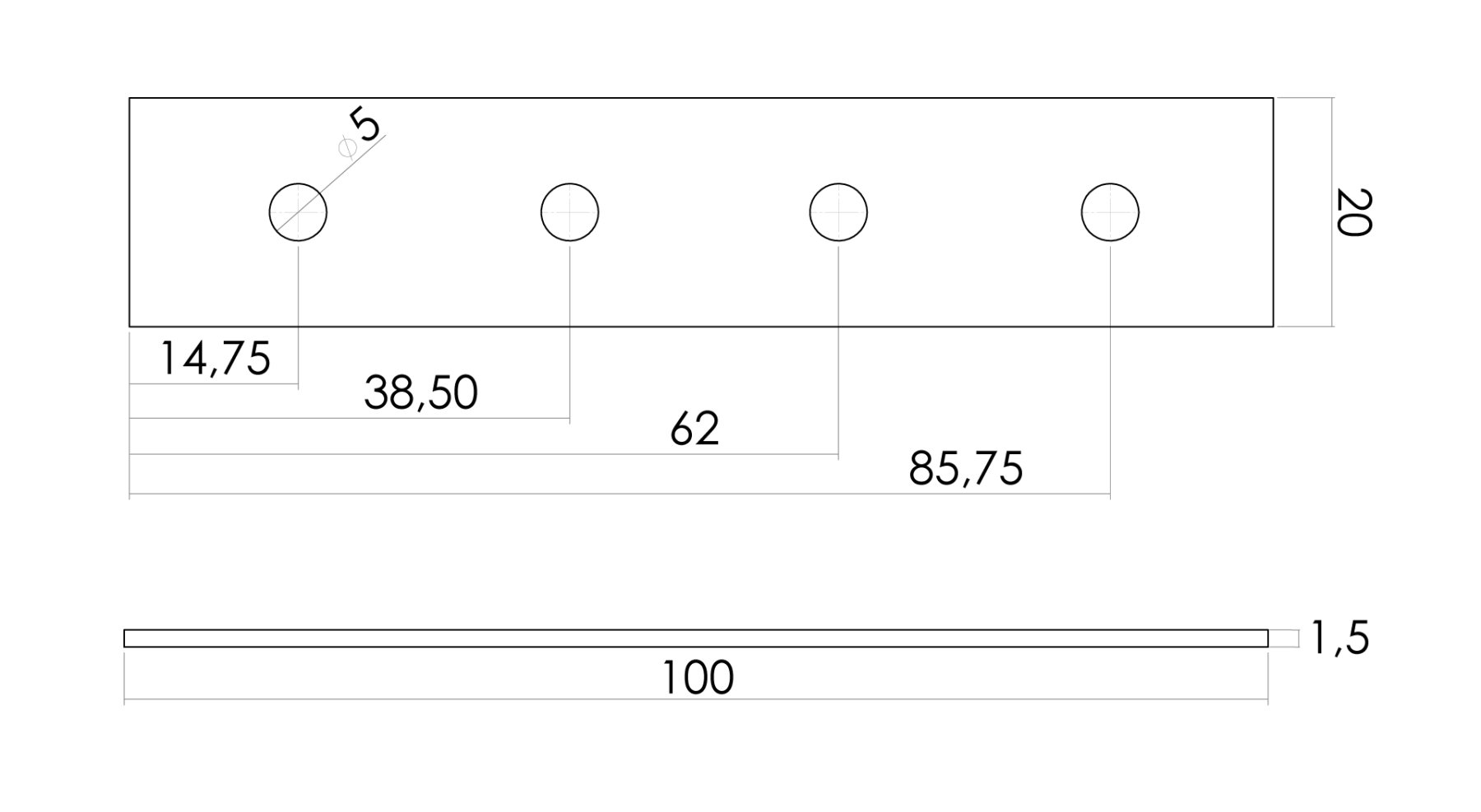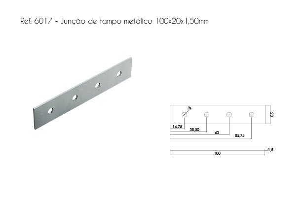 Junção de tampo metálico 100 x 20 x 1,50 mm