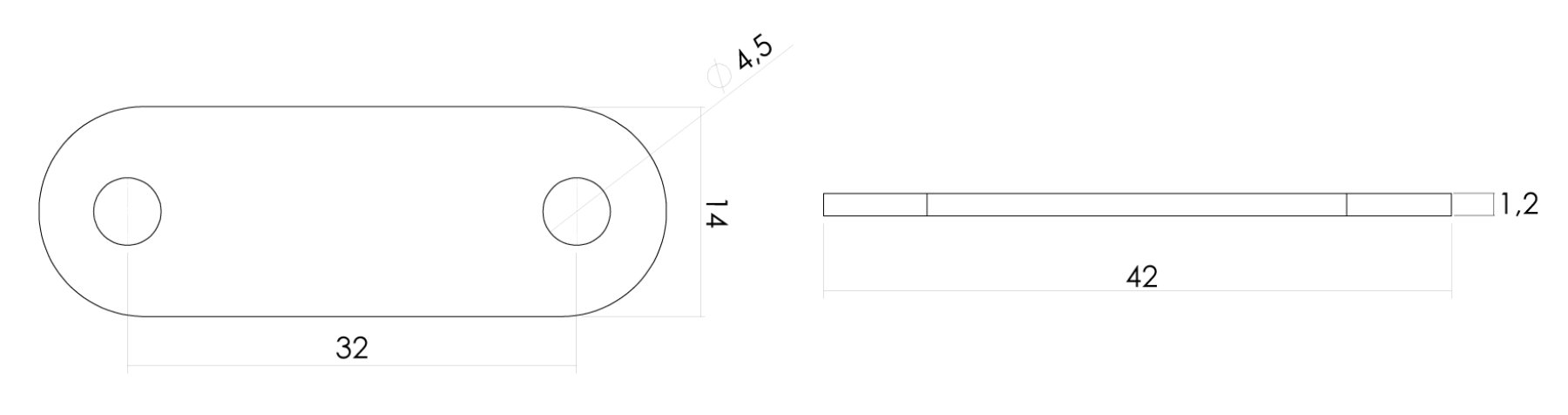Junção de tampo metálico 77 x 44 x 1,2 mm