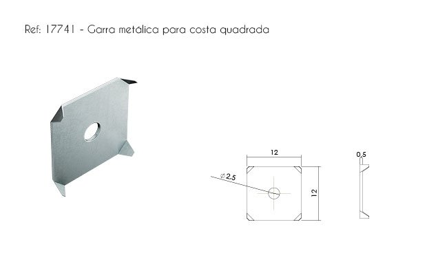 Junção de tampo metálico 77 x 44 x 1,2 mm