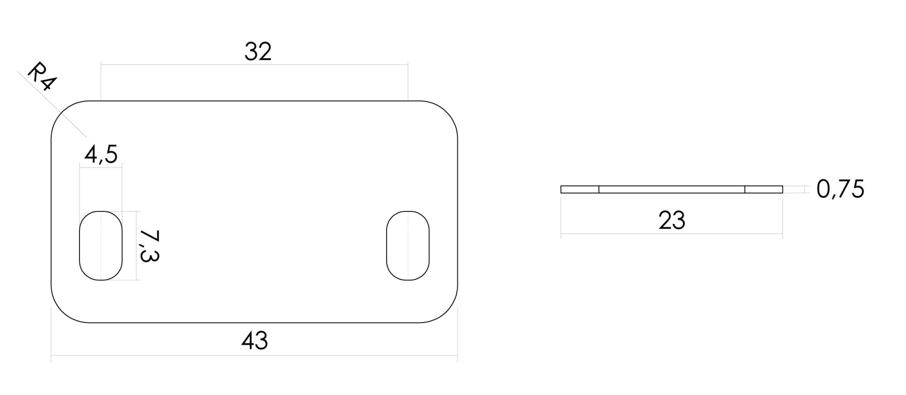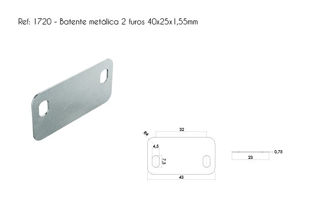 Batente metálico 2 furos 40 x 25 x 1,55 mm