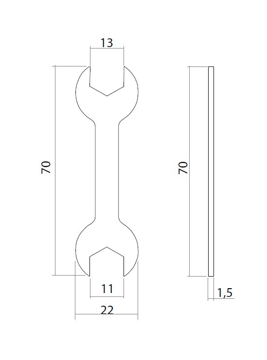 Junção de tampo metálico 77 x 44 x 1,2 mm