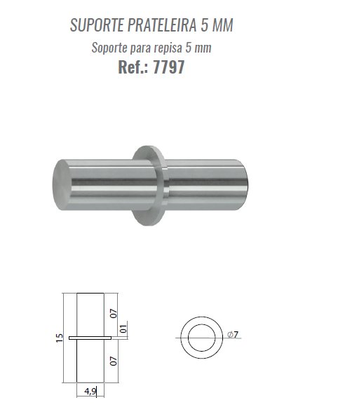 Batente metálico 2 furos 40 x 25 x 1,55 mm