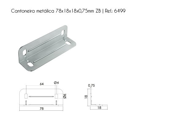 Cantoneira metálica 78 x 18 x 18 x 0,6 mm ZB
