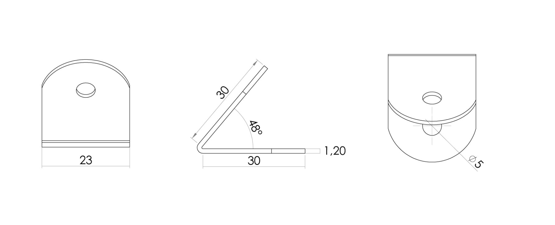 Junção de tampo metálico dobrada 57 x 30 x 30 x 1,9 mm ZB