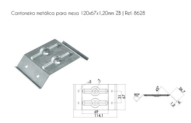 Cantoneira metálica para mesa 120 x 67 x 1,20 mm ZB