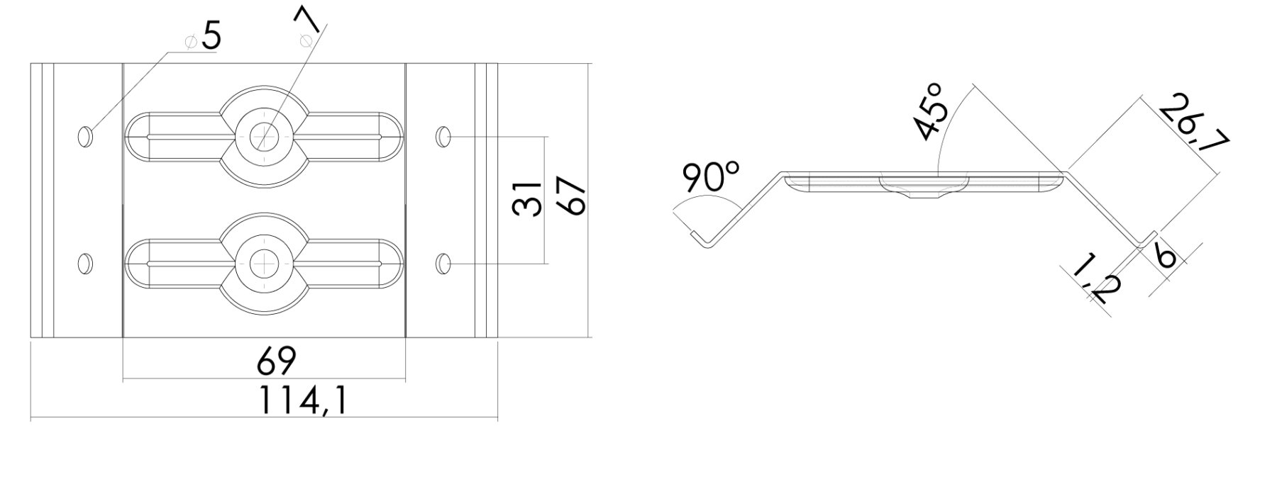 Junção de tampo metálico 110 x 44 x 1,2 mm