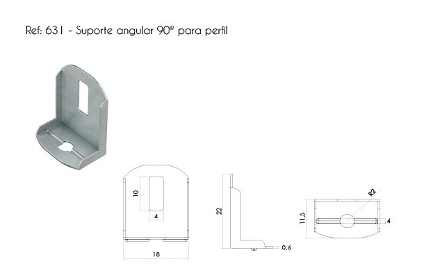Cantoneira metálica 78 x 18 x 18 x 0,6 mm ZB