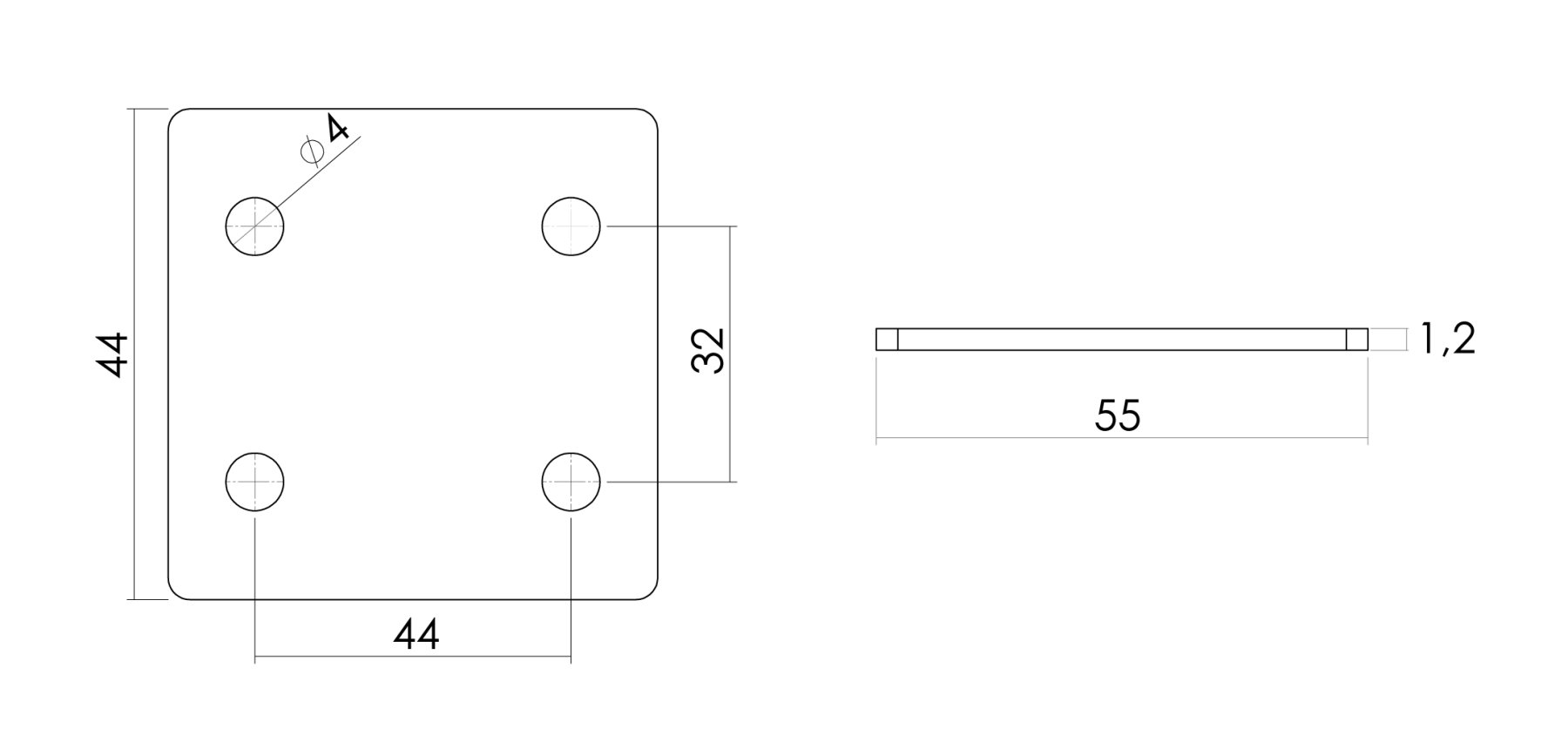 Junção de tampo metálico 77 x 44 x 1,2 mm