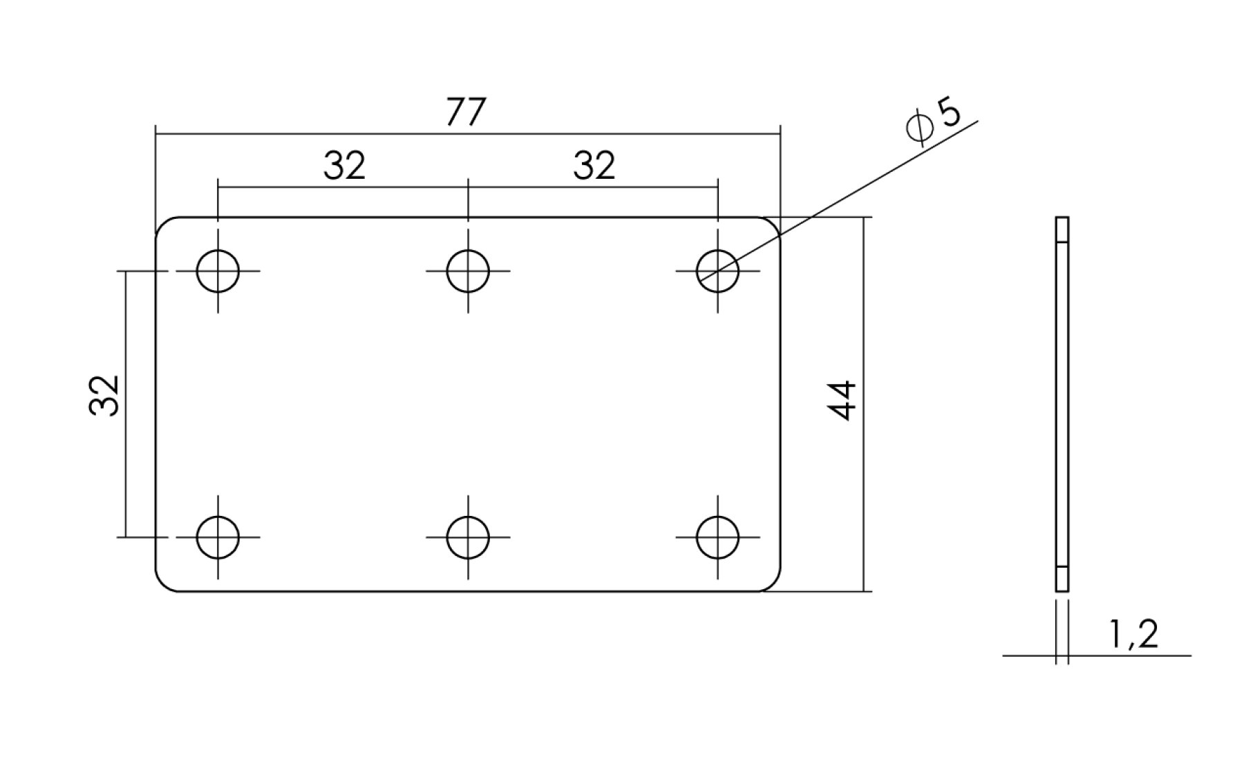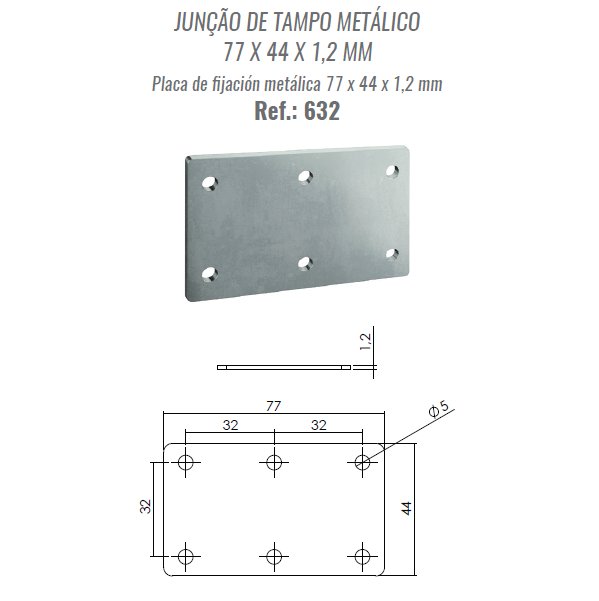 Junção de tampo metálico 77 x 44 x 1,2 mm