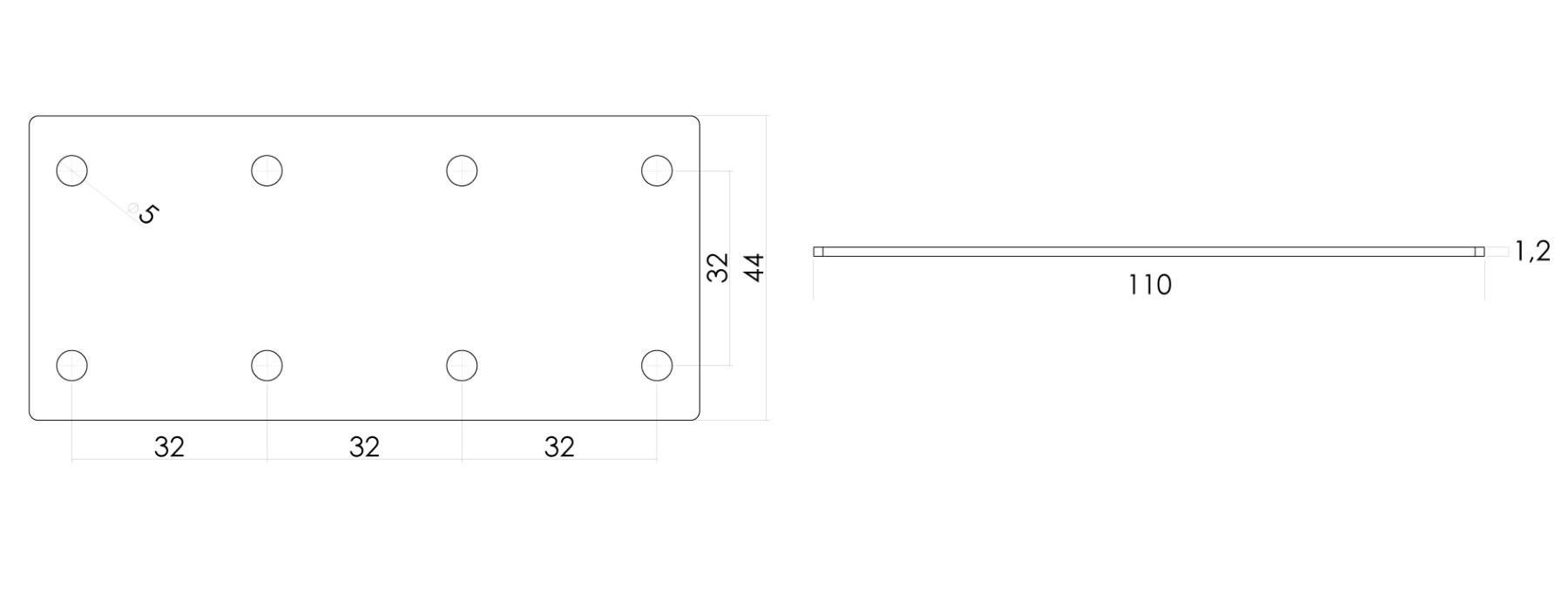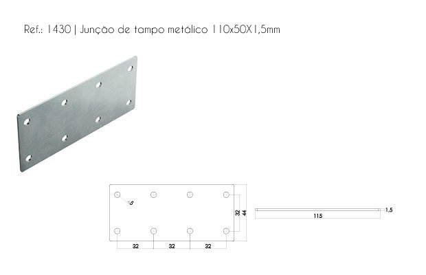 Junção de tampo metálico 110 x 44 x 1,2 mm