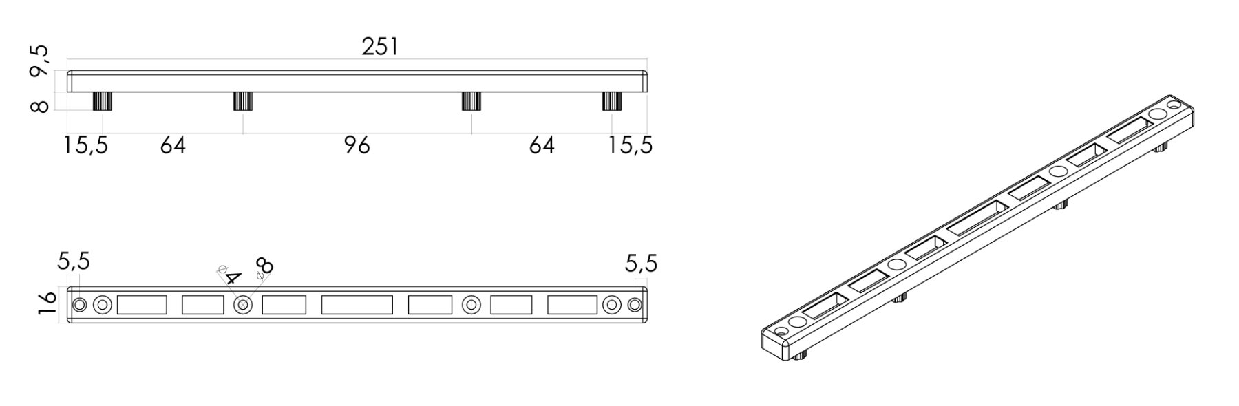 Espaciador de rieles 32 mm