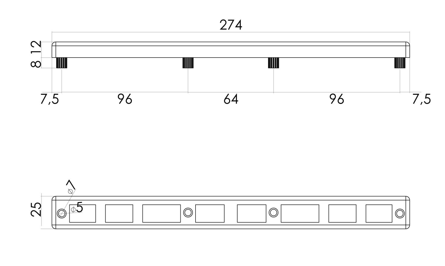 274 x 25 x 12 mm