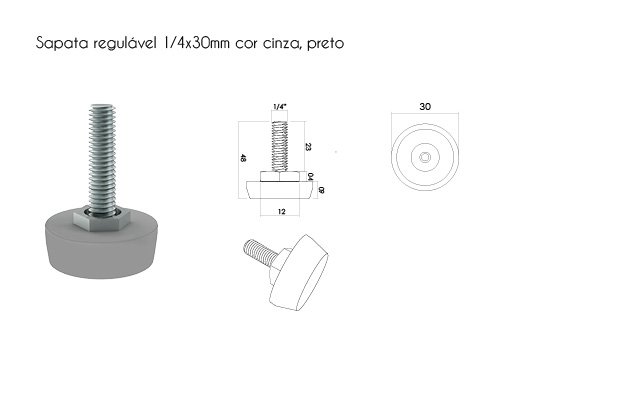 Nivelador Ajustable M6 x 30 mm / Nivelador Ajustable 1/4 x 30 mm