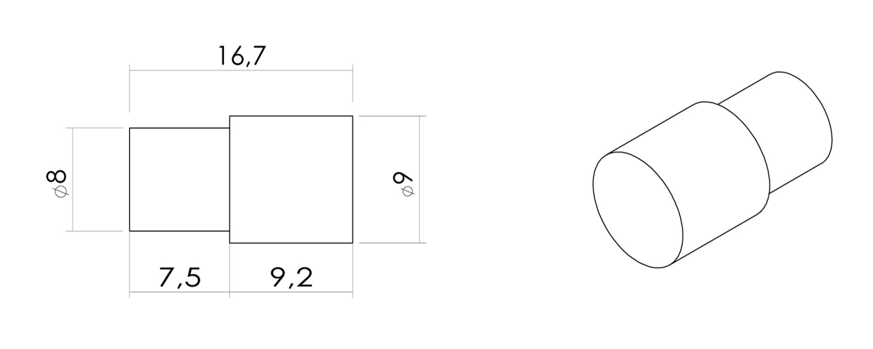 Tuerca cilíndrica 9 x 12 mm