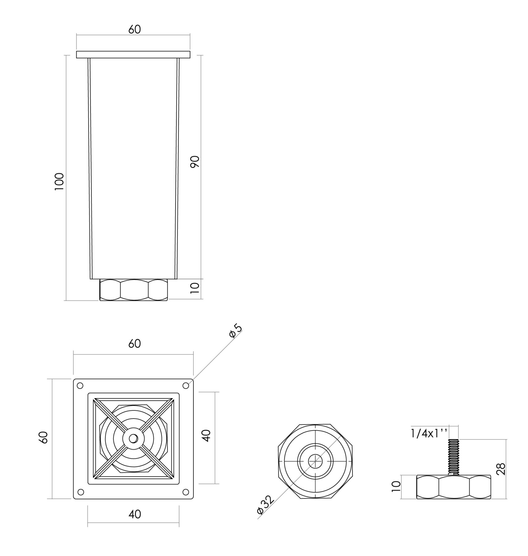 Pata plástica cuadrada 30 x 30 - 130 mm