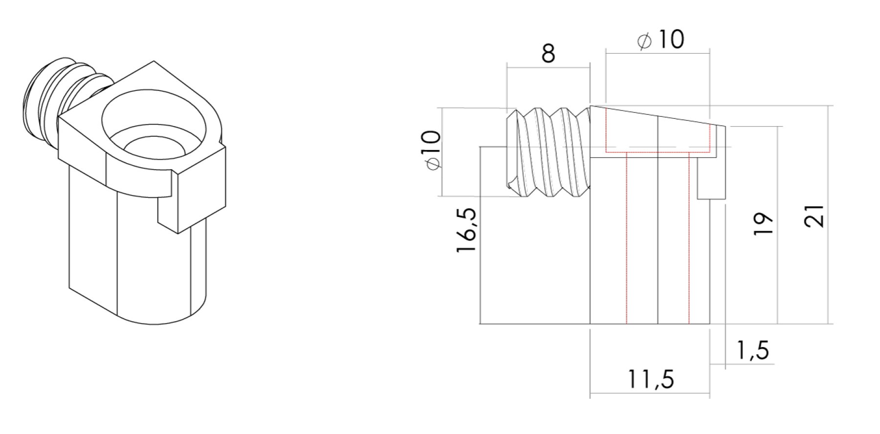 Soporte perchero con perno 10 mm