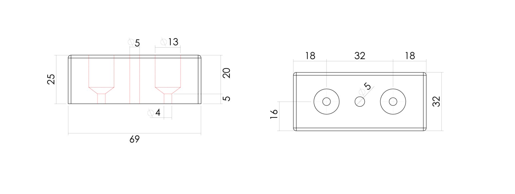 Pata plástica cuadrada 30 x 30 - 130 mm