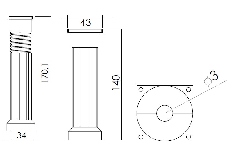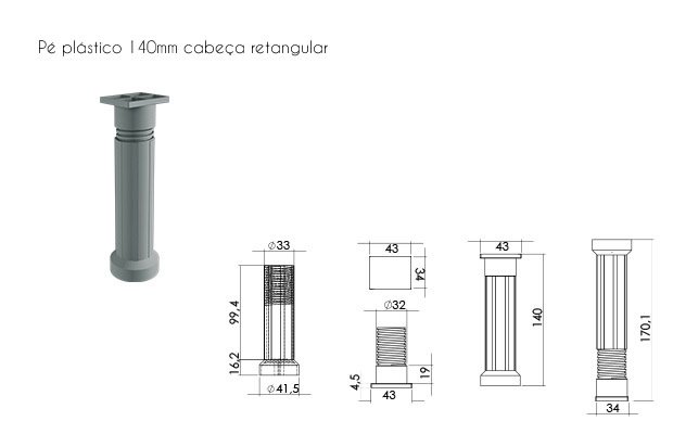 Pata plástica cuadrada 30 x 30 - 130 mm