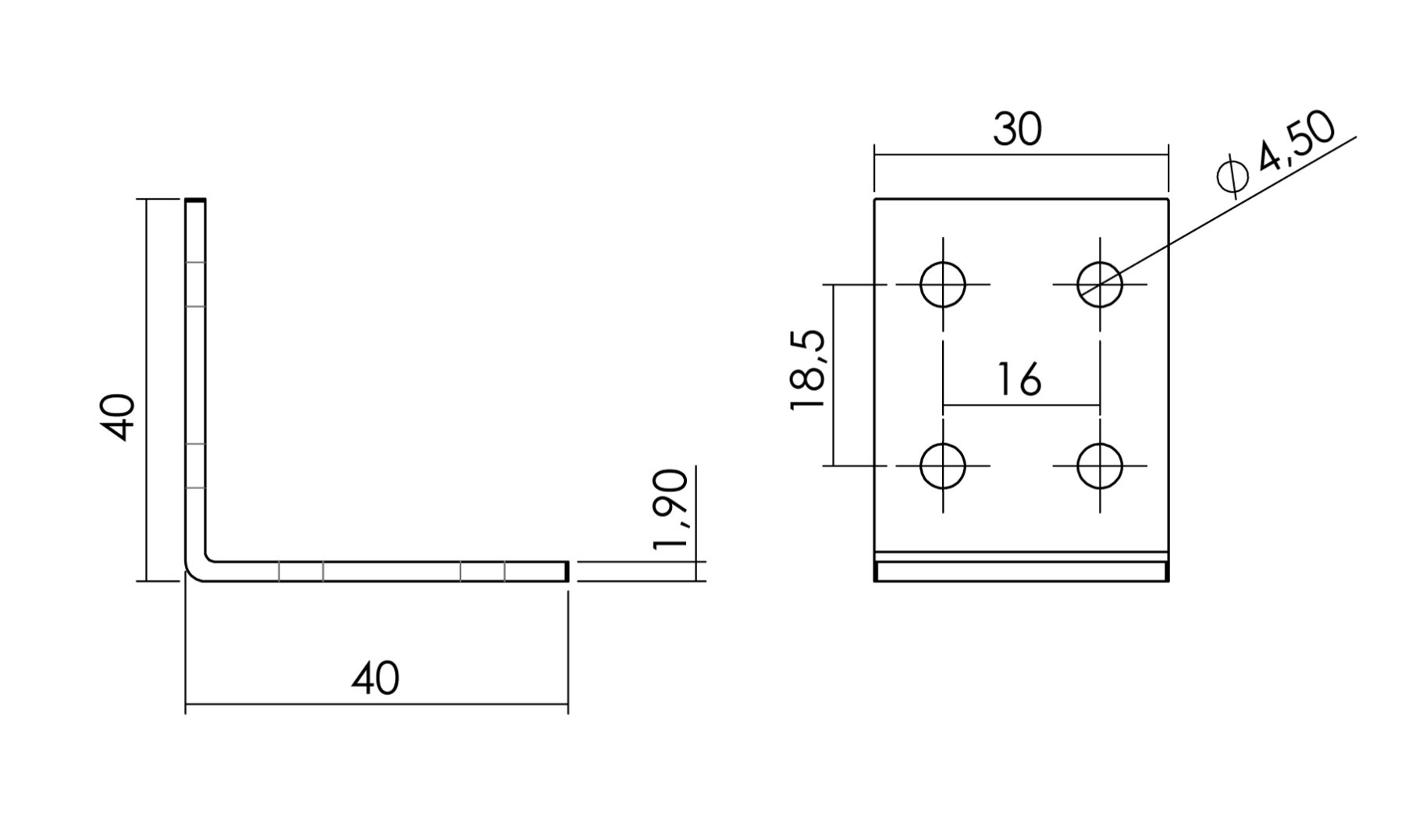 Escuadra metálica 30 x 40 x 40 x 1,90 mm
