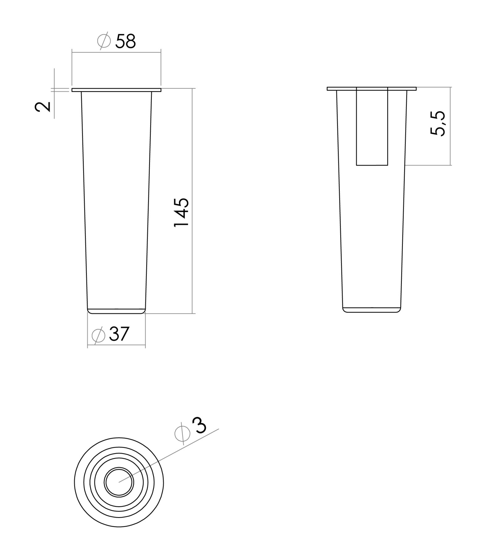Pata plástica cónica 145 mm